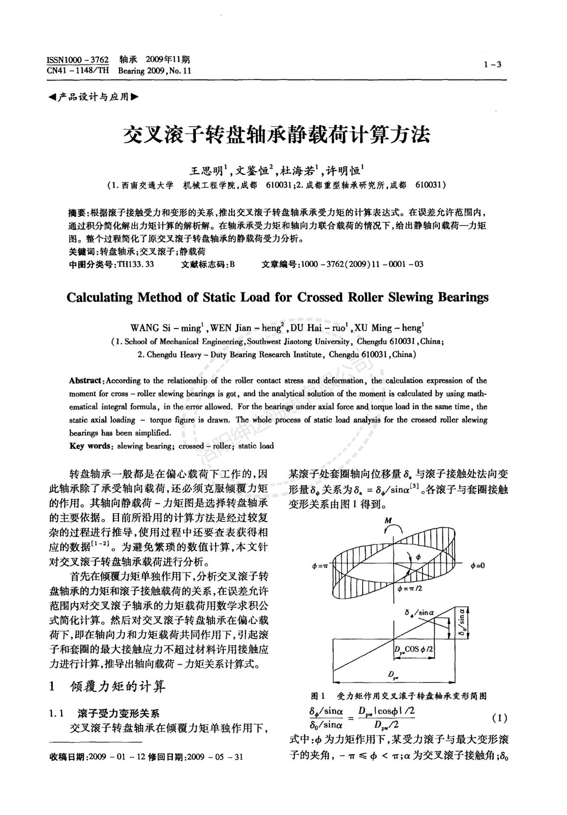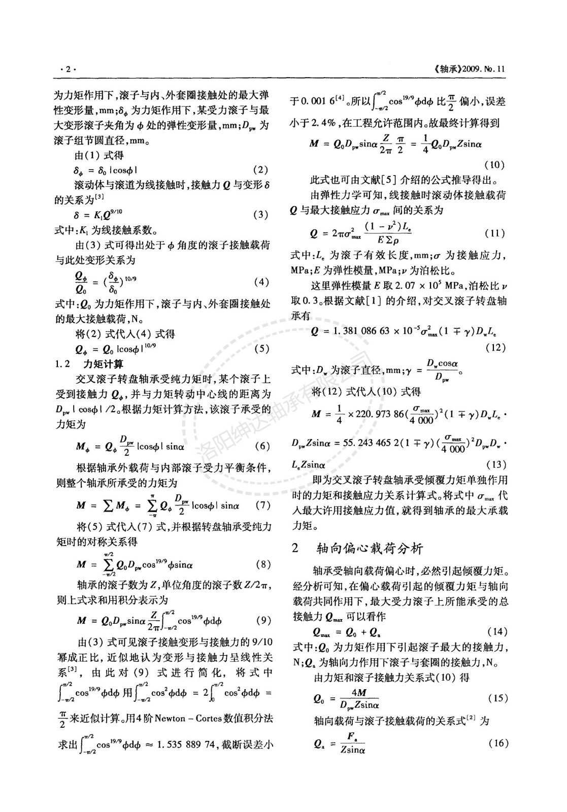 交叉滾子轉(zhuǎn)盤軸承靜載荷計算方法